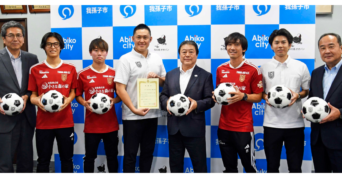 我孫子市内全ての小学校13校へ3球ずつサッカーボールを寄贈させていただくため、我孫子市役所にて行われました寄贈式に参加いたしました。